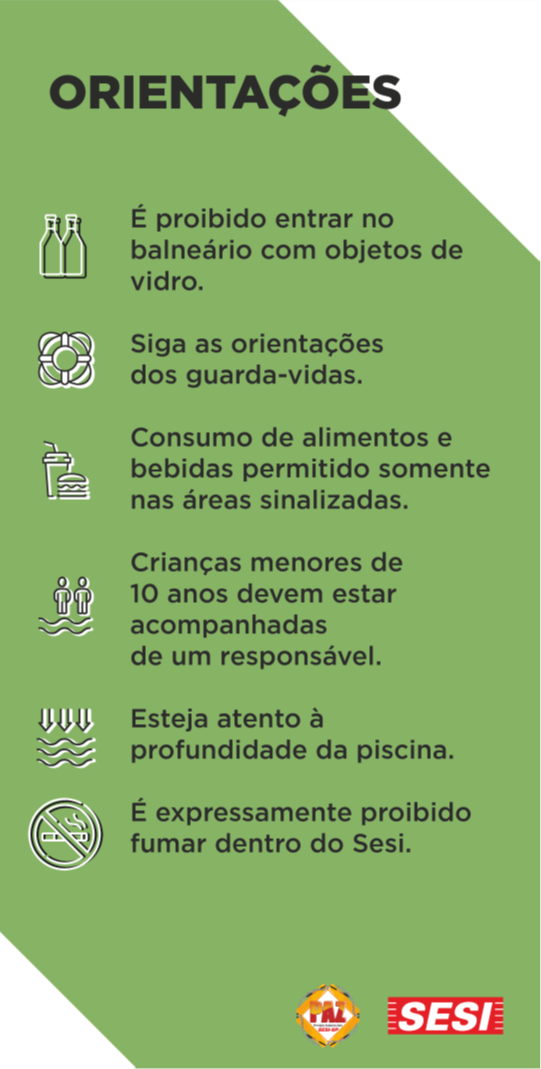 Após o pagamento, procure a portaria do SESI Americana para retirar sua pulseira de utilização; essa aquisição é válida para o dia ou para o dia posterior a aquisição.